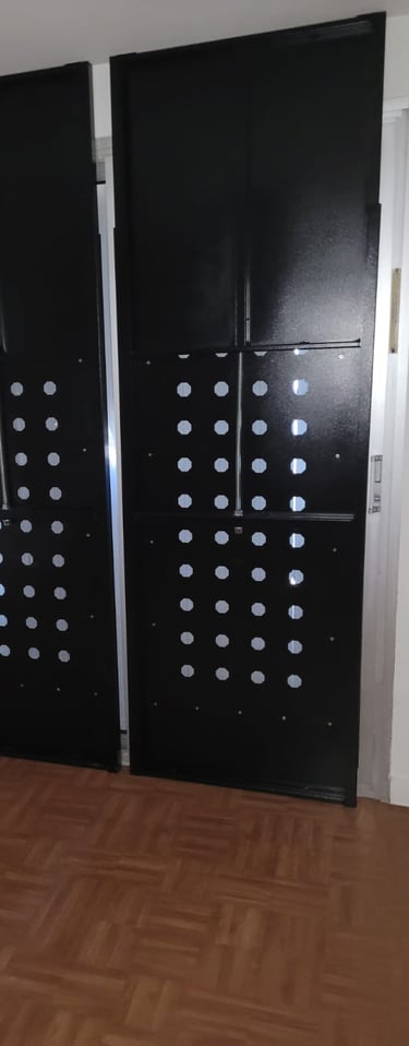 Tous nos panneaux sont en acier, blindés d’une d’épaisseur de 2mm avec sur pliage anti-arrachement sur les quatre côtés. Traités antirouille.